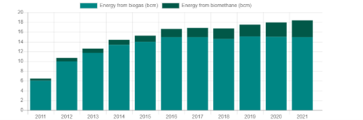 Figure 1. European Biogas Association stats on biogas and biomethane production.